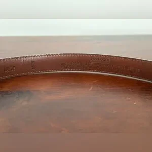 This sleek, classic Coach belt in a unique pastel mint color has a soft feminine vibe. Size large, approx 40” with a belt width of 3/4”. Solid brass buckle and 100% leather.