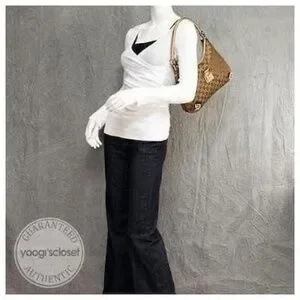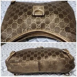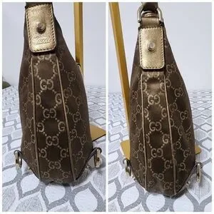 Authentic GUCCI GG Fabric Abbey Medium D-Ring Hobo Bag Gold Golden Brown