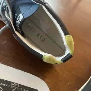 Stylish sneakers with black leather and silver glitter star. Perfect for casual wear.