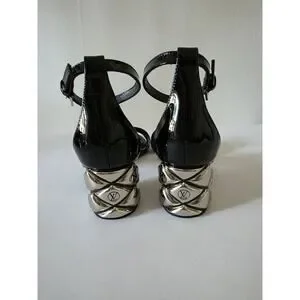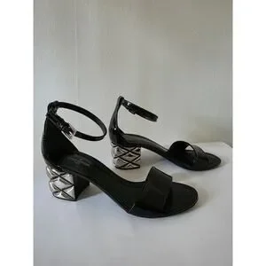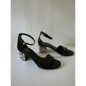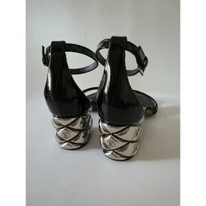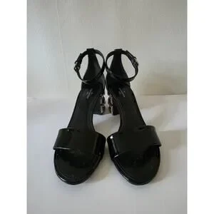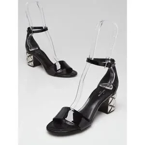 Louis Vuitton Black Patent Leather Silver-tone Sandals 36 sz