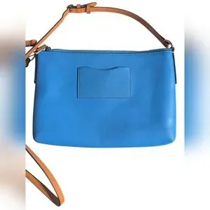 💙 Coach Pebbled Leather Crossbody Clutch – Blue with Saddle Trim