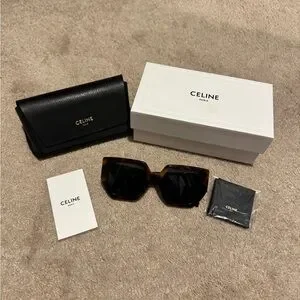 Elegant Celine sunglasses featuring a brown frame. Includes a sleek black case and branded box.