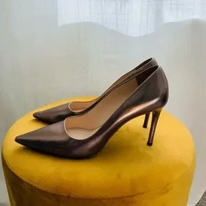 Authentic Prada Metallic Pewter Pointed Toe Pumps Size 39.5