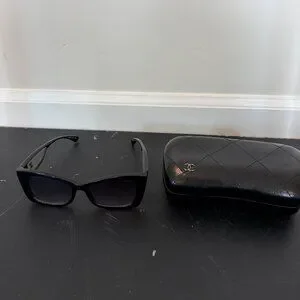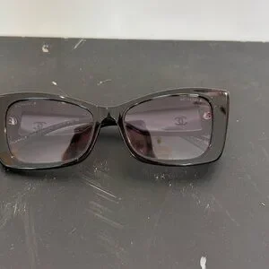Authentic Chanel 5430 black rectangular sunglasses featuring gradient lenses and classic CC logo detailing on the arms.