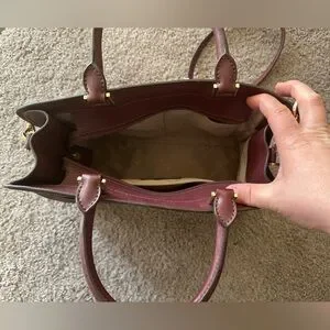 Chic Michael Kors satchel in a deep wine hue. Crafted from premium leather. Features elegant gold-tone accents. Perfect for any occasion.Only used maybe twice.