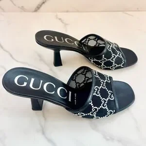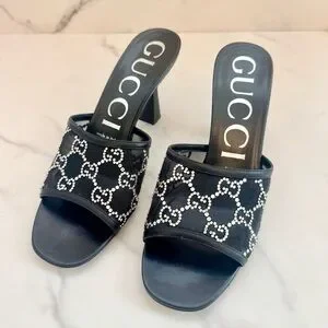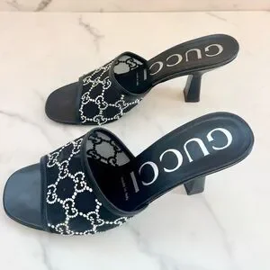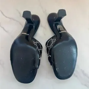 Stylish Gucci heels worn one time. In almost new shape. All crystals are in tact.