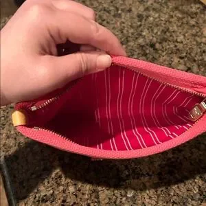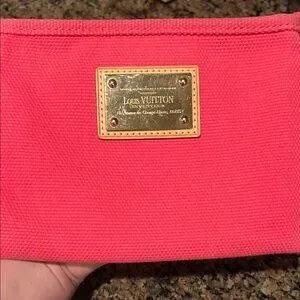 Elegant Louis Vuitton pouch in a vibrant hot pink shade. Perfect for organizing your beauty essentials. Features signature logo plaque. Please see photos for minimal wear. Special edition.