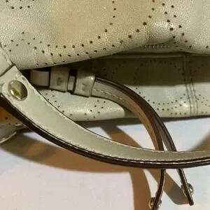 Coach grey leather satchel handbag with silver tone hardware main compartment 3 pockets at interior wall 1 zip closure & zip closure at top fabric lining hangtag at side logo at hardware exterior have some marks stains hight 11” width 14” depth 4” strap drop 4” shoulder drop 13” The dimensions are based on approximately measurements before placing an order please check take a moment to view all photos using feature for a closer look