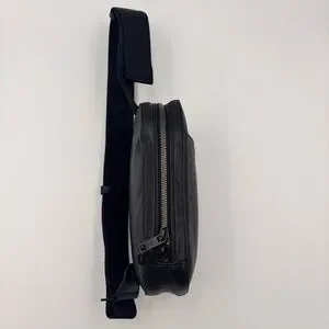 This Louis Vuitton sling bag, model M99155, features a sleek design in Noir with a zipper closure. Measuring 22.5cm x 11.5cm x 4cm, it includes a strap length of 119cm for comfortable wear.