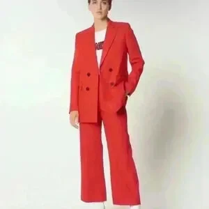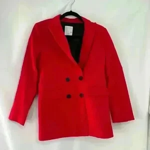 SANDRO Billy Double Breasted Swiss Dot Blazer in Red Size Xtra Small