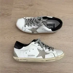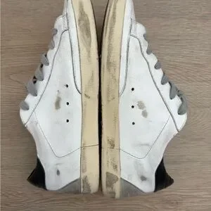 Chic Golden Goose sneakers with a black heel and gray star. Iconic design with lace-up closure. Fits size 7/7.5