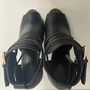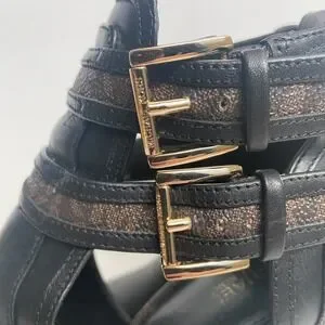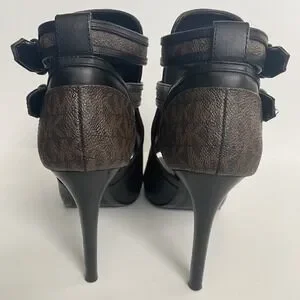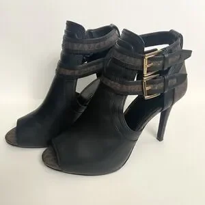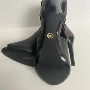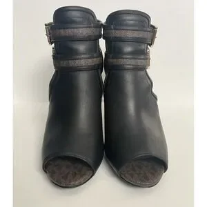 Michael Kors Women's Black Brown Logo Leather Open‑Toe Ankle Booties Size 7.5