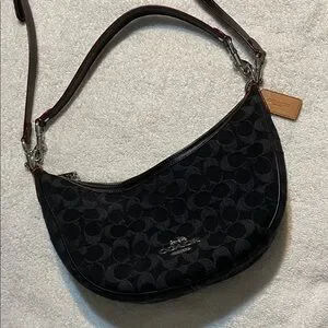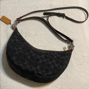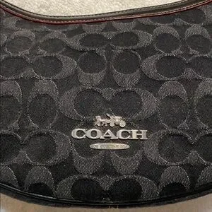 Chic Coach shoulder bag in black. Features silver accents. Perfect for everyday use.