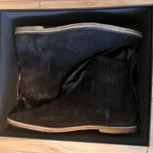 Step out in style with these sleek black suede shoes. Perfect for any occasion. Comes with dust covers