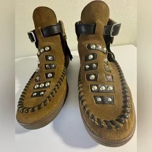 Coach Roccasin Cut Out Brown Suede Ankle Boot with Studs and Fringe
