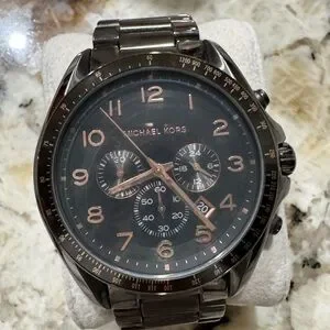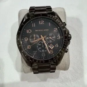 Michael Kors Gunmetal Chronograph Watch – Black Dial / Rose Gold Accents great condition