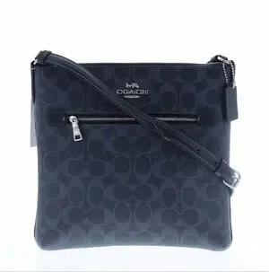 Elegant Coach crossbody bag in dark blue. Features signature pattern and adjustable strap. Ideal for daily use.