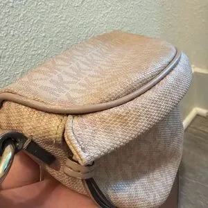 Elegant Michael Kors crossbody in blush. Features chain detail and adjustable strap. Perfect for daily use.