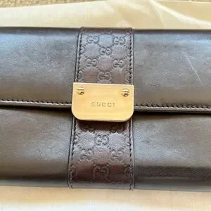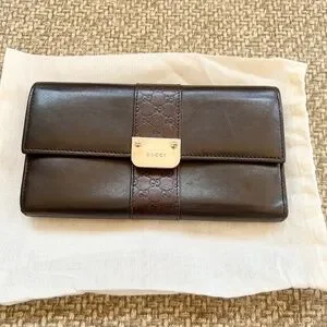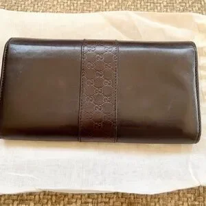 Authentic Gucci GG Embossed Leather Wallet, Brown