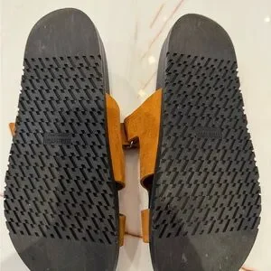 Stylish Hermes sandals. Barely worn - all signs of use in photographs. Classic Hermes sandals so chic and stylist in a gorgeous color that matches everything.