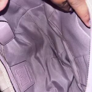 This bag is originally the lilac vintage soho hobo bag but overtime the color has faded into a beige the straps tag and inside are still lilac I was going to use this as a project to bring the color back but I don’t have the time. This bag is the large size with lots of space I absolutely love the straps they give very y2k vibes and this color is just perfect for all year round.