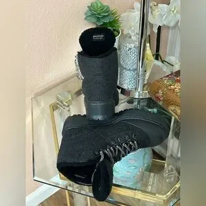 Luxurious black boots with lug sole. Ideal for versatile wear. Goes amazingly with any style, including dresses, leggings, jeans (flared, baggy, skinny), so many possibilities…