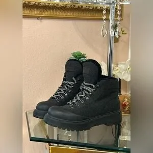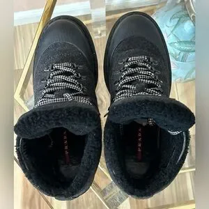 Prada Felt Shearling Fur Hiking Boots Size 38.5/8