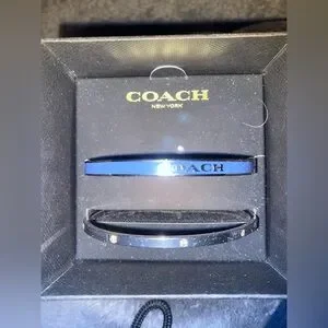 Stylish Coach bracelet duo. Features sleek silver and blue design. Perfect for any look.