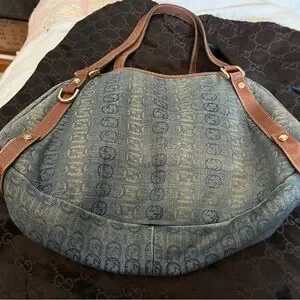 Gucci Blue Denim Tote with Brown Leather Straps