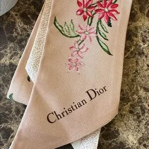 Christian Dior twilly logo floral dusty rose pink neck tie or bag handle scarf