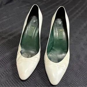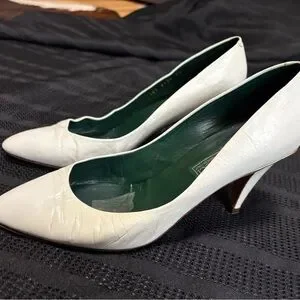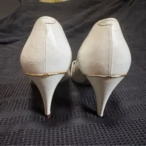 Chic Gucci heels in cream leather. Sleek and stylish design. Ideal for any occasion. There are creases to the leather and scuffs at the toes. Please see pictures for details.