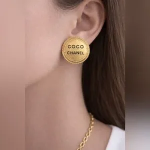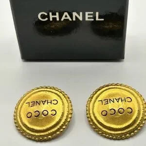 Iconic COCO Chanel button earrings in a stunning traditional gold plate. Made in France. Clip on style. Circa 1994. Hallmark in place. Excellent condition. Approx. dimensions 1.18” across.