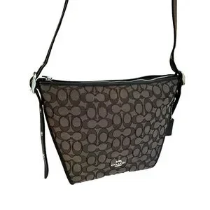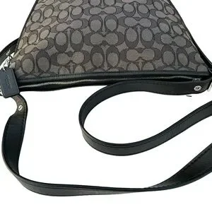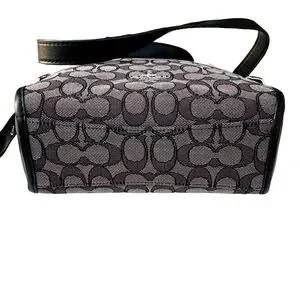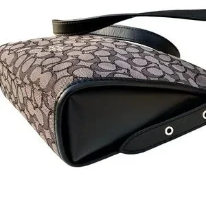 Like New Coach Dufflette Jacquard Grey Black Leather Detail Shoulder Bag Crossbody