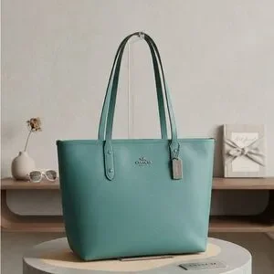 Coach City Tote shoulder bag. Blue Coach shoulder bag / tote in genuine crossgrain leather, internally lined with a semi-silky lining of the same color. Provided with genuine crossgrain leather handles, zip closure and an internal pocket with security zip and two open pockets. Silver hardware and details. Serial number: L1722-F57522