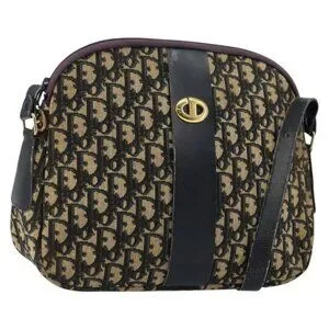 Pre-Owned Authentic Christian Dior Trotter Canvas Shoulder Bag Navy Gold
