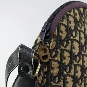 Authentic Christian Dior Trotter Canvas Shoulder Bag Navy Gold