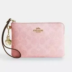 Coach Corner Zip Wristlet In Signature Canvas With Charms CEF72 NWT🌸
