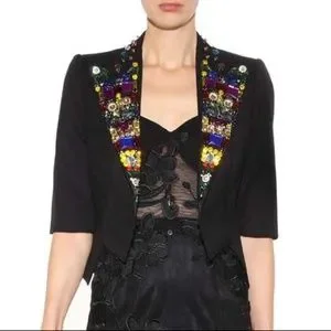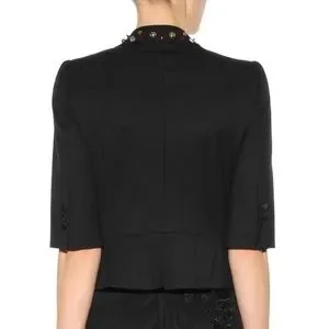 In signature Dolce & Gabbana style, this simple jacket gets a head-turning update for the new season with a crystal-encrusted peaked lapel. The blend of virgin wool and silk offers a luxe quality, while the shaped hemline of the cropped design adds a certain sharpness.