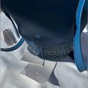 Coach Cobalt Blue Leather Studded Duffel Bucket Bag Gold Studs 2014 34506 NWT