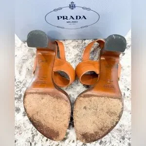 USED Prada Brown Leather Sling Backs in Cognac Size 40
