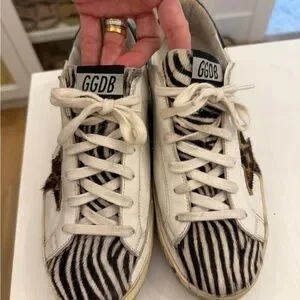 Golden Goose White and Black Zebra Print Sneakers