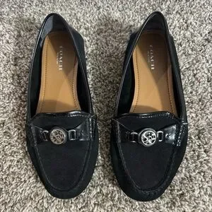 Coach Women's Black Loafers with Silver Accent Size 7