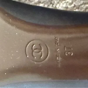 CHANEL Navy Leather Camellia Flower Heels – Gold CC Logo – Made in Italy