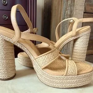 Chic Coach espadrille heels with woven design. Stylish and comfortable for any event.