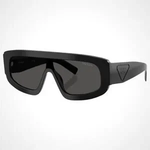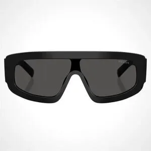 New PRADA Sunglasses Black Shield Mask Triangle Logo Grey Lens