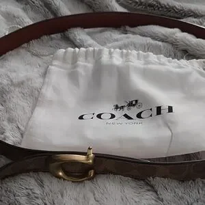 Elegant Coach belt in tan with a gold buckle. Adds sophistication to any look.