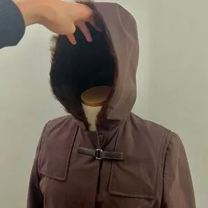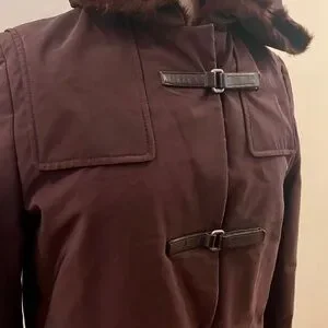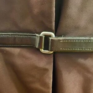 Prada FW 1999 - fur lined brown Nylon Coat with Leather Velcro strap closure