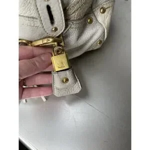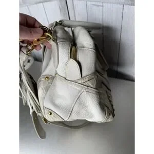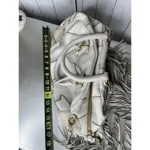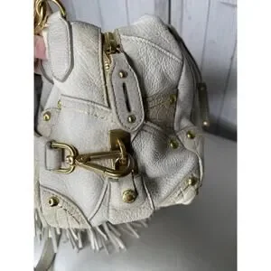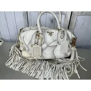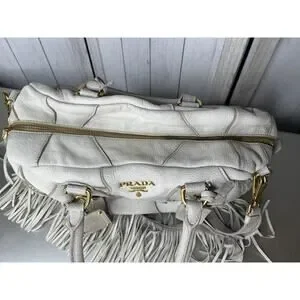 Prada Taupe Gold Leather Antik Cervo Fringe Large Bowler Bag Top Handle