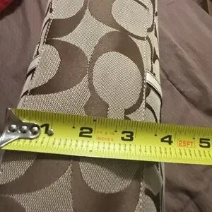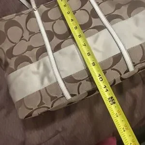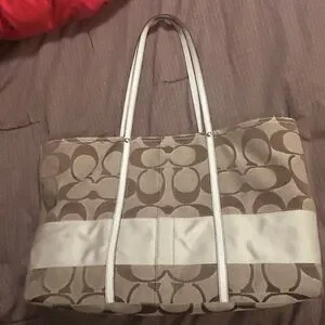 Elevate your style with the Coach Signature Canvas Tote Bag. Featuring a chic brown and white design, this bag is perfect for any occasion. Crafted with quality materials, it offers both elegance and durability. Multi color inside used good condition some marks ass seen in pic