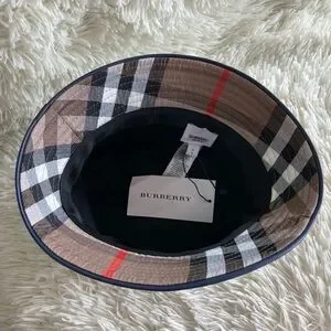 Iconic Burberry check pattern. Features brown and red. Stylish and versatile.